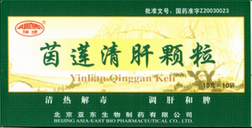 [成  分]: 茵陈、板蓝根、绵马贯众、茯苓、郁金、当归、红花、琥珀、白芍(炒)、白花蛇舌草、半枝莲、广藿香、佩兰、砂仁、虎杖、丹参、泽兰、柴胡、重楼。