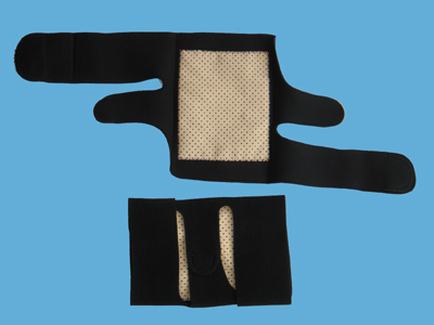 远红外负离子热能护膝采用托玛琳、纳米功能陶瓷粉及特殊的热感应材料复合而成。在人体体温的激发下,通过转移触媒的作用,热感应材料即时反应放出热量。