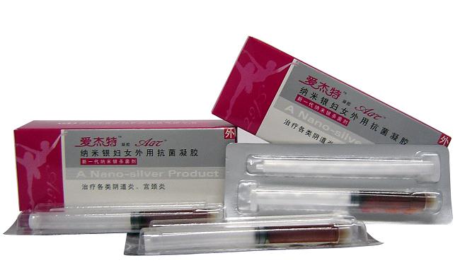 【结 构】纳米银妇女外用抗菌凝胶(爱杰特凝胶)由给凝胶器和纳米银凝胶两部分组成。纳米银凝胶装在给凝胶器内,约3g。当抗菌凝胶进入女性生殖道后,在阴道和宫颈部位形成一层保护膜,从而杀灭致病微生物。