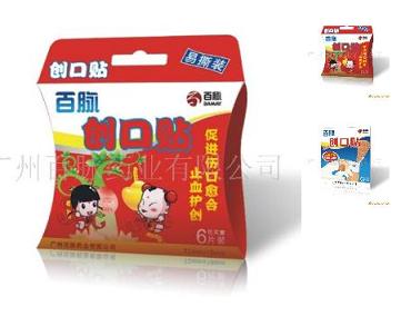 创口贴由胶布、隔粘薄膜,护垫组成。具有止血、护创,促进伤口愈合的作用。 |