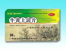 成 份: 人工牛黄、薄荷、菊花、荆芥穗、白芷、川芎 、栀子、黄连、黄柏、黄芩、大黄、连翘、赤芍、当归 、地黄、桔梗、甘草、石膏、冰片。辅料为淀粉、明胶、蔗糖、滑石粉、川蜡、食用色素。