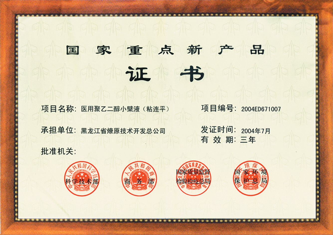 粘连平(医用聚乙二醇小檗碱液)的四项创新、三项技术国际首创