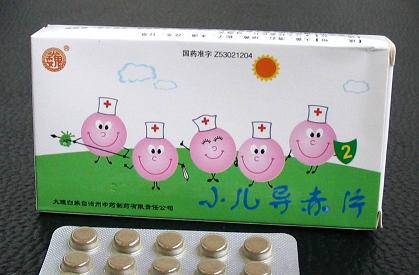 小儿导赤片-高效、无毒副作用儿童中药抗菌药! 【主要成分】大黄、滑石、地黄、栀子、甘草、木通、茯苓。 【用法用量】口服,一次4片,一日2次,周岁以内酌减。 【批准文号】Z53021204 【功能主治】清热利便,用于胃肠积热,口舌生疮,咽喉肿痛,牙根出血,腮颊肿痛,暴发火眼,大便不利,小便赤黄。 【规格】20片/盒
