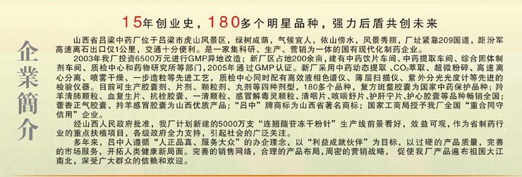 | 公司名称:山西省吕梁中药厂 | 营销总部 | ||||||||||||||||