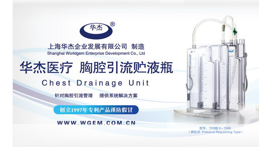 我公司研发、生产和销售的一次性胸腔引流瓶已有十多年的历史,也是起草和制定《一次性使用胸腔引流装置 水封式》行业标准的单位之一 。在上海市松江区的生产基地拥有国内最先进的吹塑、注塑、灭菌等设备,符合国家医疗器械(GMP)最新规范。