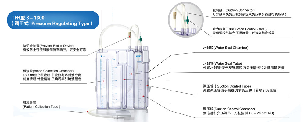 我公司生产的《一次性胸腔引流瓶》系列产品,是结合临床实际情况而设计的,其新颖、美观、独特的结构及安全性能更好地满足了临床的需求,领先于国内同类产品,被全国各地数十家著名医院采用,深受医护人员的喜爱。